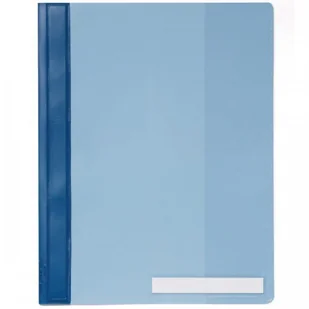 Skoroszyt o specjalnej szerokości do koszulek na dokumenty. Wysoka jakość w codziennym użyciu. Z twardej folii, z przezroczystą okładką przednią, kolorową okładką z tyłu. Mechanika skoroszytowa z tworzywa sztucznego ze specjalnymi zakończeniami. Przezroczysta kieszeń wewnętrzna dla niedziurkowanych dokumentów.