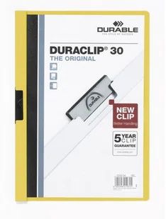 Duraclip Original- Skoroszyt zaciskowy A4 umożliwiający przechowywanie dokumentów bez potrzeby dziurkowania- Zacisk wykonany ze specjalnej elastycznej stali- Posiada 5-letnią gwarancję na siłę docisku- Przezroczysta okładka- Pojemność do 30 lub do 60 kartek- Opakowanie zawiera 25 sztuk- Jednostka sprzedaży 1 opakowanie