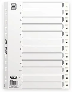 Elba 400013903 przekładki z tworzywa sztucznego Strong-Line 10 szt. 1-12 12 12-częściowy zestaw do plastikowych zakładek z możliwością zapisania okładki, segregator, teczka pierścieniowa 400013903