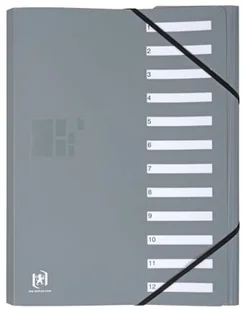 Teczka na dokumenty Oxford A4 z tworzywa sztucznego, 12 przegródek/zakładek, segregator pultorowy, szary, 1 sztuka