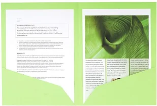 Opakowanie 25 okładek na dokumenty z 2 wewnętrznymi przegródkami wykonane z kartonu Manila 220g Nature Future dla formatu DIN A4 Okładka na dokumenty z 2 wewnętrznymi przegródkami umożliwia segregowanie dokumentów po obu stronach okładki Okładka na dokumenty wspierająca ochronę i ponowne zalesianie lasów i ekosystemów bardzo wytrzymała tektura wykonana z nowych włókien papierowych żywe kolory poprawiają widoczność dokumentów Pojemność (arkusz 80 g): 60 Ta teczka umożliwia podwójne segregowanie lub podwójną prezentacjęWewnętrzne przegródki w kształcie litery L zapewniają optymalne wsparcie dla dokumentów "25 opakowań teczek ROCK "S" 210 z 2 wewnętrznymi przegrodami z tektury Manila - podwójne A4 lub A3" Okładka na dokumenty z 2 wewnętrznymi przegrodami umożliwia archiwizację po obu stronach okładki. Bardzo wytrzymała tektura jest wykonana z nowych włókien papierowych. Żywe kolory poprawiają widoczność dokumentów. Do formatu A4 lub A3.