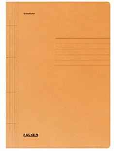100x Skoroszyt kartonowy Falken. Wyprodukowano w Niemczech. Skoroszyt A4 pomarańczowy z metalową listwą zaciskową, mechanizm wpinania od góry lub od dołu. Certyfikat Błękitny Anioł