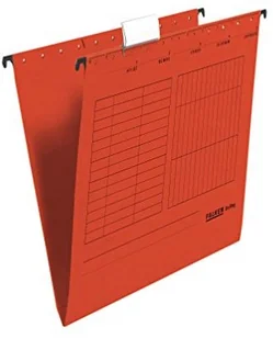 FALKEN Teczka zawieszkowa Falken Unireg opakowanie 25 szt. Wyprodukowano w Niemczech. Tekturowa A4 z plastikową fiszką do opisu czerwona Idealna do kartoteki do biur i urzędów. Certyfikat Błękitny Anioł 80002496