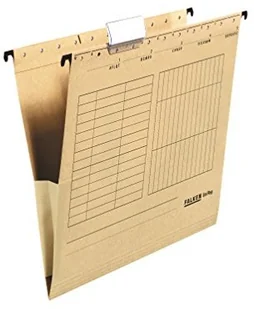 FALKEN Teczka zawieszkowa z płóciennym bokiem Falken Unireg opakowanie 5 szt. Wyprodukowano w Niemczech. Tekturowa A4 z plastikową fiszką brązowa Idealna do kartoteki do biur i urzędów. Błękitny Anioł 11287794