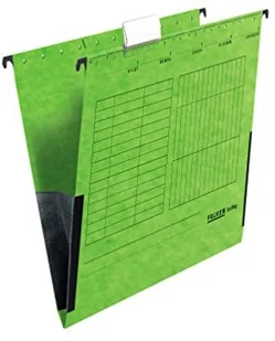 FALKEN Teczka zawieszkowa z płóciennym bokiem Falken Unireg opakowanie 5 szt. Wyprodukowano w Niemczech. Tekturowa A4 z plastikową fiszką zielona Idealna do kartoteki do biur i urzędów. Błękitny Anioł 11288024