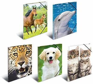 HERMA 7148 Teczki kolekcjonerskie A3 ze zwierzętami, asortyment 10 sztuk, teczki narożne dla dzieci z tworzywa sztucznego z wewnętrznym nadrukiem i gumowym ściągaczem, stabilne teczki z tworzywa