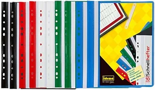 Idena 307862 - Szybka teczka na dokumenty DIN A4, perforowana, plastikowa, 2 x niebieska/zielona/czerwona/biała/czarna, 10 szt.