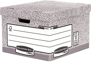 Pudło archiwizacyjne Heavy-Duty R-Kive duże Bankers Box SystemKonstrukcja zawartości w odniesieniu dogłównych części wyposażenia: ze zdejmowaną pokrywą nadruk archiwizacyjnyWyjątkowa wytrzymałość dzięki podwójnie wzmocnionej tekturze falistej i wzmocnionym uchwytom do przenoszenia. System FastFold do montażu w kilka sekund. Możliwość ustawienia do 6 pudeł jedno na drugim. Idealne do przechowywania folderów i teczek zawieszkowychMateriał: