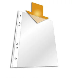 w segregatorach również z mechanizmem ringowym. Ze wzmocnioną listwą dziurkowaną. Z polipropylenu. Format A5 pionowy. Wykonanie: otwarcie górne. Grubość materiału: 0,06 mm. Dziurki: 45 x 65 x 45 + 80 mm.