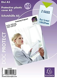 Opakowanie 10 gładkich tulei ochronnych z gładkiego PVC 150µ, dla formatu DIN A5 Rękawy ochronne Exacompta Materiał: PVC Pojedyncza osłona ochronnaMateriał: PVCZastosowanie dla formatów papieru: DIN A5Rozmiar (szer. x wys.): 148 x 210 mmLiczba tulei: