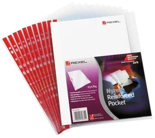 Rexel Quality A4 perforowane kieszenie z czerwonym grzbietem, lewe otwarcie, wytłaczane, opakowanie 25 sztuk, 12253