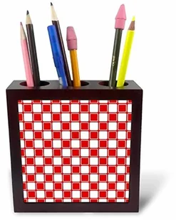 3dRose 3dRose ph_215822_1 5-calowy"wzór współczesnych kwadratów" uchwyt na długopisy do płytek - czerwony/biały ph_215822_1