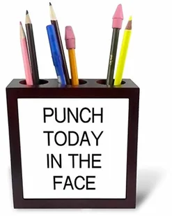 3dRose ph_245837_1 5-calowy uchwyt na długopisy do płytek "Punch Today in the Face" - czarny
