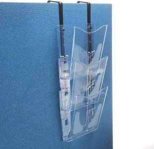 Krystalicznie przezroczysty ścienny stojak na broszury z częściowo ustrukturyzowaną powierzchnią, w tym materiał montażowy. Łatwy dostęp i przechowywanie dokumentów. Trwała konstrukcja, Materiał: G PPS (polistyren ogólnego przeznaczenia). Rozmiar: A4, format poziomy.