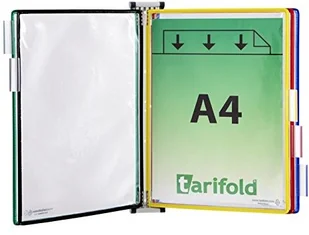5 przezroczystych tablic z kolorowymi plastikowymi ramkami w kolorach czarnym, żółtym, czerwonym, zielonym i niebieskim zapewnia miejsce na najważniejsze dokumenty. Przeglądaj je jak książki i z łatwością znajduj potrzebne dokumenty. Tablice ekspozycyjne są otwarte u góry, dzięki czemu można je szybko i łatwo zapełnić. Szybkie i łatwe mocowanie do ścianyDostarczamy również materiał mocujący do przykręcenia metalowej ramy do ściany. 4 ograniczniki (również zawarte w dostawie) zapewniają optymalny kąt odczytu.