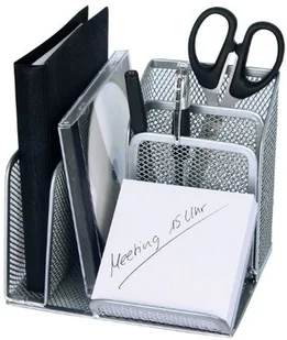 Wedo Butler Office 6554 pojemnik na długopisy (4 przegródki i ukośna półka, metal), srebrny