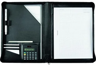 - zamek błyskawiczny dookoła- kieszonkowy kalkulator - notatnik - trzy kieszonki na wizytówki - wsuwana kieszeń DIN A4Odpowiedni dla: