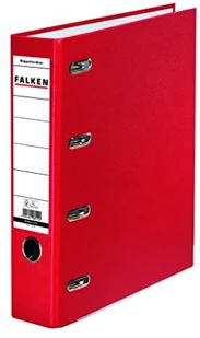 Podwójny segregator Falken dla 2x A5 poziomo z tworzywa sztucznego szerokość 7 cm czerwony z wymienną etykietą. Wyprodukowano w Niemczech. Segregator na wyciągi z konta Segregator bankowy