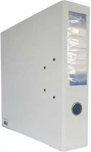 biały Wzmocniony otwór na palec ułatwiający wyjmowanie segregatora Okładka z folii polipropylenowej (PP) Wymienna etykieta opisowa Mechanizm dźwigniowy Metalowe okucia na dolnych krawędziach dla dodatkowej wytrzymałości Dwa metalowe otwory na przedniej okładce Wewnątrz biała wyklejka papierowa Szerokość grzbietu wynosząca 75 mm Dodatkowa etykieta opisowa wewnątrz segregatora