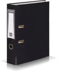* wykonany z twardej, 2 mm tektury_* oklejka kolorowa, pokryta folią polipropylenową _* wyklejka papierowa_* mechanizm dźwigniowy z dociskiem_* grzbiet o szerokości 50 lub 75 mm_* oczko grzbietowe_* metalowe okucia dolnej krawędzi _* okucia owalne_* wymienna etykieta do opisu