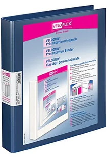 Segregator ringowy prezentacyjny VELODUR®, format DIN A4 265x315x40, laminowany PP, mechanizm ringowy 4-D, wysokość wypełnienia 25 mm, odpowiedni na ok. 250 kartek papieru 80 g, kieszenie na całą stronę na przedniej okładce i grzbiecie, tylna kieszeń poszerzona, ułatwiająca włożenie etykiety grzbietowej, niebieski Przetwarzane w procesie introligatorskim. Szybki i ekonomiczny do samodzielnego zaprojektowania. Rozszerzona kieszeń na grzbiecie - ułatwiająca umieszczenie etykiety grzbietowej. Odporność na temperaturę - większa trwałość dzięki jednoczęściowej tekturze.