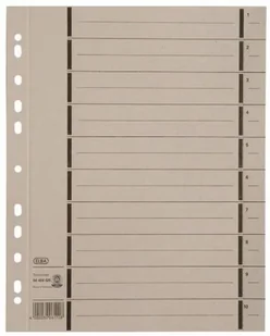 Z nadrukiem linii 1-10, europerforacja. Wymiary: 240 x 300 mm (szer. x wys.). Opis Przekładki ELBA z perforacją, DIN A4 bardzo szerokie, szare wykonane z kartonu Manila, 250 g/m², nadruk w czarne linie 1-10 zakładek perforowanych, europerforacja Wymiary: (szer.) 240 x (wys.) 300 mm Zawartość: 100 sztuk (06456 GR) Zakładkę można odłączyć przez perforację.