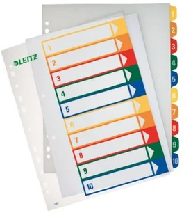 Leitz przekładki na dokumenty A4, okładki z możliwością zapisania na komputerze i 10 przekładek, zakładki z nadrukiem liczbowym 1-10, ponadszerokość, białe/wielobarwne, polipropylen, 12930000