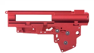 Szkielet gearboxa dedykowany do tuningu replik z gearboxami v3. Wykonany został z wytrzymałego aluminiom 7075 poddanego obróbce CNC. W zestawie dołączony został komplet łożysk kulkowych 8 mm, które umożliwiają zamontowanie mocnych sprężyn, a także zmniejszają opory toczenia.