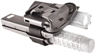 BH-LH-05 podwójny futerał z tworzywa sztucznego rotacyjny do pałki teleskopowej o długości 21" - 26" i latarki zaoszczędza miejsce na pasku - podwójny futerał zamiast 2 samodzielnych futerałów. Chociaż obie części podwójnego futerału obracają się na pasku jednocześnie, ich wzajemna pozycja pozostaje bez zmian. Klamra pozwala szybko założyć futerał na pasek bez konieczności jego zdejmowania. Futerał można regulować w zakresie 0-360 stopni w 16 pozycjach.