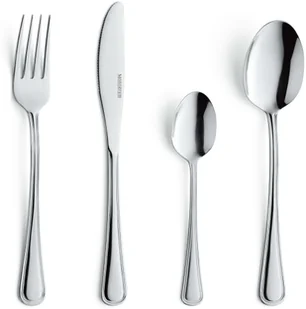 Nakrycia stołowe mogą być trochę nudne, ale zestaw Bologna marki Amefa zapewni Ci wysokiej jakości sztućce z eleganckim akcentem. Ten nowoczesny zestaw sztućców składa się z 24 elementów ze stali nierdzewnej: 6 noży, 6 widelców, 6 łyżek oraz 6 średnich łyżeczek do herbaty. Delikatne linie i tłoczenia wokół każdego egzemplarza nadają im tradycyjny wygląd. Każdy zestaw marki Amefa można myć w zmywarce dla Twojej wygody, a zastosowana stal nierdzewna zapewnia wysoką odporność na korozję.