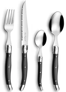 Zestaw sztućców Tradition marki Lou Laguiole, o stylowym wykończeniu uchwytów na wysoki połysk wniesie idealne połączenie elegancji i rustykalnego klimatu na Twój stół. Tradycyjny kształt nadaje sztućcom niepowtarzalny wygląd, a precyzyjnie wykonane ząbki na nożach umożliwiają krojenie bez wysiłku. Każdy zestaw Tradition można wygodnie myć w zmywarce, a zastosowana stal nierdzewna zapewnia wysoką odporność na korozję. Dzięki charakterystycznemu, francuskiemu wzornictwu marki Lou Laguiole wprowadzisz klasyczną atmosferę na stół i możesz cieszyć się pysznym posiłkiem w dobrym stylu.