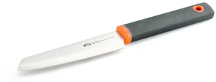 GSI Santoku 4" Paring Knife to nieduży nóż turystyczny wykonany ze stali nierdzewnej i nylonu. Jest to podręczny turystyczny nóż kuchenny wyposażony w 4 calowe ostrze. Rękojeść jest wykonana z tworzywa nylonowego i silikonu. Ostrze jest chronione przez perforowaną osłonkę, dzięki czemu bez problemu można transportować nóż w bezpiecznych warunkach.