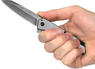 Funkcjonalne ostrzeSmukła klinga o użytkowym profilu reverse-tanto ma efektowne postarzane wykończenie BlackWash (czarne oksydowanie), która skutecznie maskuje drobne zarysowanie lub wytarcia głowni powstałe podczas użytkowania. Dzięki zastosowaniu mocnego sztychu, wklęsłego szlifu oraz krawędzi tnącej o łagodnej krzywiźnie, nóż ma dobre właściwości tnące, a ostrze nie klinuje się w ciętym materiale. Grubość klingi w najszerszym miejscu wynosi 2,8 mm, co stanowi kompromis pomiędzy wytrzymałością i funkcjonalnością noża w codziennej pracy. Poprzeczne frezy wykonane na grzbiecie klingi pozwalają na stabilne oparcie palców podczas pracy. Wygodna obsługaKlinga rozkładana jest jedną ręką za pomocą frezowanego flippera, rozwiązania wygodnego zarówno dla prawo, jak i leworęcznych użytkowników.