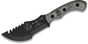 Sztywny nóż bushcraftowy TRACKER MINI to mały brat swojej większej wersji. Należy do najbardziej popularnych modeli marki TOPS Knives. Starannie przemyślany nóż autorstwa Toma Browna Juniora to wszechstronne narzędzie do przetrwania. Radzi sobie z siekaniem, cięciem i krojeniem, wycinaniem, ściąganiem ze skóry, wyrzucaniem i wieloma innymi zadaniami. Jeśli jesteście fanami filmów akcji, ten design mogliście zobaczyć także w filmie "The Hunted".