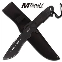 TAKTYCZNY Nóż ostrze stałe MTech USA MT-621BK 0STRZE STAŁE Materiał ostrza: stal nierdzewna 440 Ostrze sygnowane Druga strona ostrza ząbkowana Długość całkowita: ok 30 cm Rękojeści: z okładziną z wytrzymałego tworzywa W zestaw