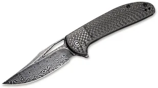 Solidnie wykonany, składany nóż amerykańskiej firmy WE Knife przeznaczony do codziennego użytku (EDC). Wyposażony został w ostrze o grubości 3 mm zahartowane do 60 HRC. Głownię o profilu clip-point wykonano z wysokiej jakości stali węglowej typu damast, o dobrze widocznym, charakterystycznym wzorze. Płaski szlif wyprowadzony do połowy ostrza w połączeniu z niewielką grubością głowni zapewnia dobre właściwości tnące. Na uwagę zasługuje również bardzo dobre wyważenie noża.