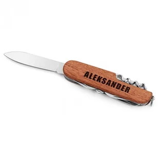 Scyzoryk w drewnianej oprawie z wygrawerowanym imieniem dla niego na imieniny