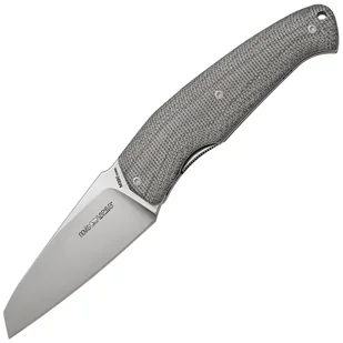 Rękojeść wykonana jest z zielonego canvas micarta, która lekko się zakrzywia i zwęża ku końcowi, zapewniając doskonały chwyt. Bez klipsa do kieszeni. W zestawie znajduje się czarne skórzane etui.