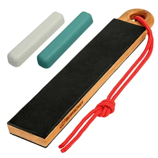 Grubsza strona działa cuda, aby uzyskać wypolerowane wykończenie, podczas gdy gładsza strona podnosi ostrze do poziomu doskonałości, który jest niczym innym jak perfekcją. Dzięki przemyślanemu ergonomicznemu projektowi, strop jest niezwykle łatwy w obsłudze, a zintegrowany otwór na smycz zapewnia, że zawsze jest pod ręką, gotowy do działania. Wyposażony w najwyższej jakości skórę bydlęcą i drewniany blok wykonany z jesionu, wiśni lub orzecha, ten strop jest świadectwem trwałości i niezrównanej wydajności ostrzenia. LS9P2 dostarczany jest również z duetem past polerskich (do stropowania). Biała pasta jest Twoim sprzymierzeńcem w precyzyjnym ostrzeniu, z finezją usuwającą zadziory i niedoskonałości.
