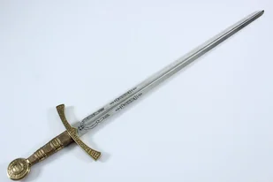 Replika średniowiecznego miecza wykonana z metalu.