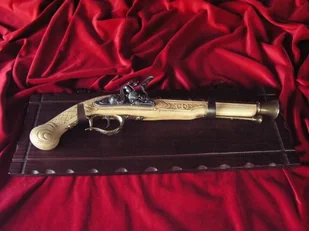 STARY PISTOLET SKAŁKOWY WRAZ Z DREWNIANĄ ZAWIESZKĄ (K1094-105M )