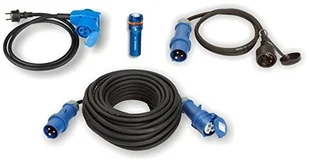 as - Schwabe Outdoor Set, 10m Verlängerungskabel + 2x Adapter-Leitung CEE, Schutzkontaktstecker und Buchse/Kupplung mit Powerlight Spannungsanzeige + Taschenlampe XT1, Blau/Schwarz, 19601