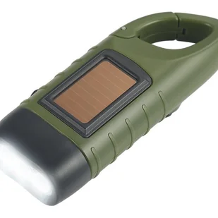 Zasilana wyłącznie korbką ręczną i energią słoneczną (ładowanie przez USB nie jest obsługiwane), nie wymaga zewnętrznego źródła zasilania.