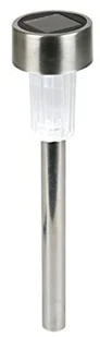 Solarna lampa ogrodowa LED ze szpikulcem i czujnikiem 37 cm, chłodna biel, stal nierdzewna, energooszczędna, 24 sztuki Panel słoneczny: 1x 2V / 40mA * Typ źródła światła: 1 x bardzo jasna dioda LED (10,000~12,000 mCd) * Kolor światła: biały * Bateria: 1x ogniwo guzikowe NiMh 40H * Autonomia: