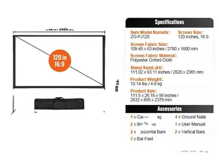 Dzięki torbie do przechowywania 420D Oxford, nasz ekran zewnętrzny jest łatwy w transporcie i zapewnia najwyższą wygodę, gdziekolwiek jesteś, czy to w domu, w podróży, na kempingu czy na podwórku! Specyfikacja: rozdzielczość: 4k/1080 hdkąt widzenia: 160°współczynnik proporcji: 16: 9materiał: zmywalna tkanina poliestrowastabilność: