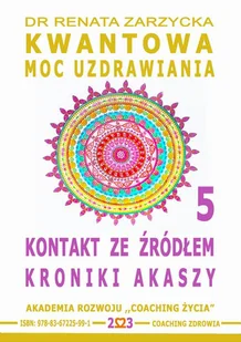 W księdze 5 serii „Kwantowa Moc Uzdrawiania”, poruszane są zagadnienia techniczne dotyczące rytuałów i modlitw wprowadzających do Kroniki Akaszy oraz zamykających za nami przestrzeń portalu wszechświata. W audiobooku omawiane są najistotniejsze kolejne kroki po to, aby odczyt z Kroniki Akaszy był czysty, bez naleciałości myślowych, schematów i przekonań osoby, będącej przekaźnikiem – MEDIUM. Omawiane dodatkowo medytacje i specjalne modlitwy w celu łączenia się z boska energią, pomogą w przyspieszonym tempie oczyścić się z negatywnych energii codzienności i wejść w czystą aurę wibracji jedności, miłości i spokoju w sobie, co będzie odbijało się w zwierciadle wszechświata. To co mamy w sobie emanuje na zewnątrz, zatem najważniejsze jest aby należycie zadbać o siebie i swoje czyste, niczym nie zakłócone wibracje. Ważne aby utrzymywać synchroniczność ze światem zewnętrznym. Oznacza to, że wszystko, co dzieje się wewnątrz człowieka, wpływa na jego zewnętrzną rzeczywistość. Człowiek szczęśliwy z poczuciem spełnienia, radości i szczęścia, emanuje blaskiem, niezależnie od tego ile ma lat. Uśmiech lubi odwzajemniać nasze szczęście. Wtedy też działa Prawo Rezonansu i dzięki częstotliwości szczęścia, człowiek przyciąga do siebie więcej korzystnych dla siebie tego typu sytuacji i wybiera z szeregu możliwości wariant „FALI SZCZĘŚCIA”, jako linię życia. W ten sposób przyciąga do siebie i skupia na sobie coraz więcej wibracji szczęścia. W przestrzeni wariantów linii życia, jakie człowiek posiada do wyboru, są i te z nieszczęściem i te ze szczęściem, a nawet „żyły złota”. Ważne jest dla człowieka osiągnięcie celu i temu oddaje on swoją uwagę, bez zamartwiania się o szczegóły. Jest to stan, kiedy dusza jest w jedności z ciałem. Wtedy chwytając szczęście, znajdując się na jednym z wariantów linii życia na wibracji „fali szczęścia”, siłą rozpędu dostaje się w energetyczne pole tego szczęścia i przeskakuje na kolejne, coraz silniej wibrujące linie.