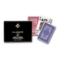 Najwyższej jakości w 100% plastikowe karty renomowanej firmy Ferd. Piatnik & Sohne. Czarne, tradycyjne pudełko zawiera 2 talie, składające się z 55 kart o wymiarach 58 x 89 mm. Idealne zarówno do brydża, pokera, remika jak i innych gier. Wyroby wiedeńskiej fabryki Ferd.