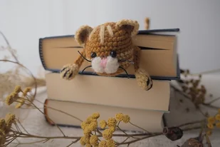 Zakładka do książki z sympatycznym kotem wykonana z włóczki na szydełku. • długość ok. 23 cm (bez głowy i ogona) • miękka i przyjemna w dotyku • stworzona w miejscu wolnym od dymu papierosowego i zwierząt Ponadcz ...