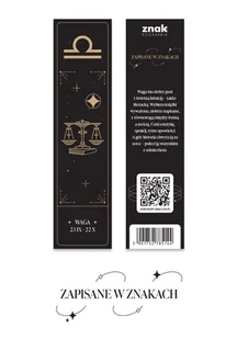 Waga to mistrzyni harmonii – także w literaturze. Wybiera lektury pięknie napisane, dopracowane i pełne równowagi między formą a treścią. Przód zakładki zdobi subtelny symbol Wagi w złotej oprawie na eleganckim, czarnym tle, z motywem inspirowanym światem książek. Tył kryje krótką, trafną i z odrobiną wdzięku charakterystykę tego znaku – idealną dla zaczytanych miłośników estetyki.