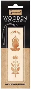 Zakładka drewniana Joga. Drewniana zakładka ze wstążką z obustronnym nadrukiem Jest w 100% biodegradowalna, wykonana przy użyciu minimalnego nakładu energii, gazu i wody Zakładka posiadaj certyfikat FSC, gwarantujący odpowiedzialne pozyskiwanie drewna Wyprodukowana na Litwie